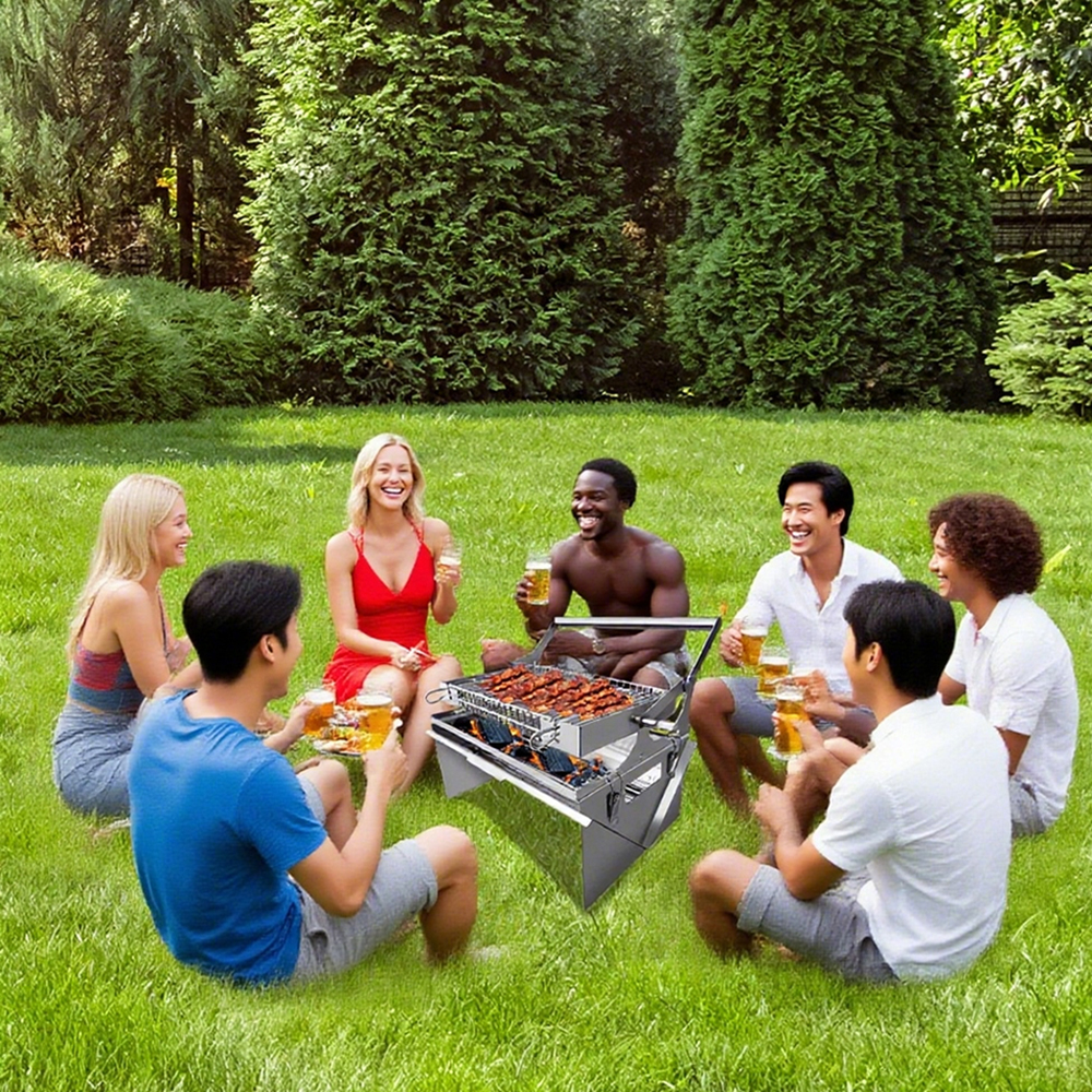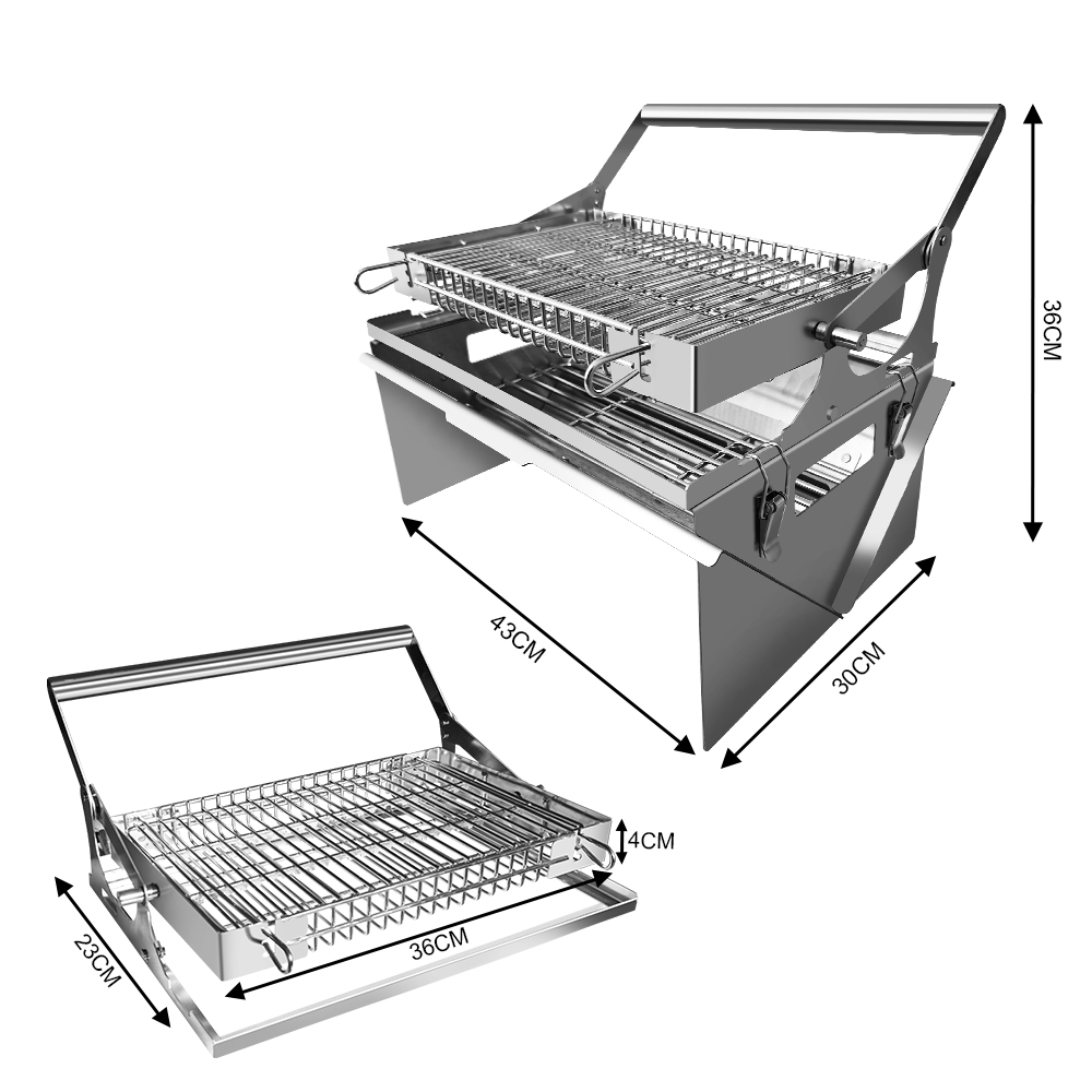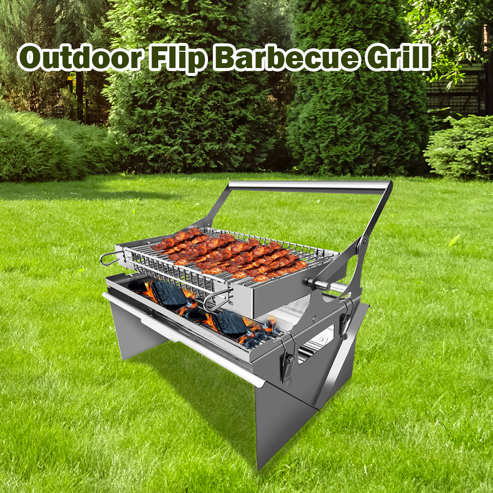 Fed up with bulky grills ruining your camping or beach trips? This foldable rotating grill fits your backpack/trunk—take it anywhere!