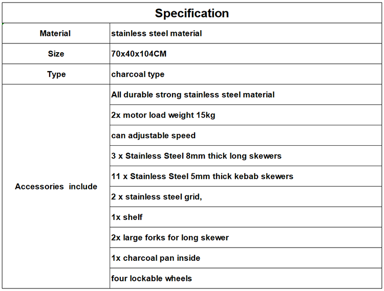 Products include chicken lamb pig bbq grills/spit roaster/rotisserie, bbq motors, bbq accessories,food machine such as sausage clipper,sausage stuffer,meat mixer,etc.