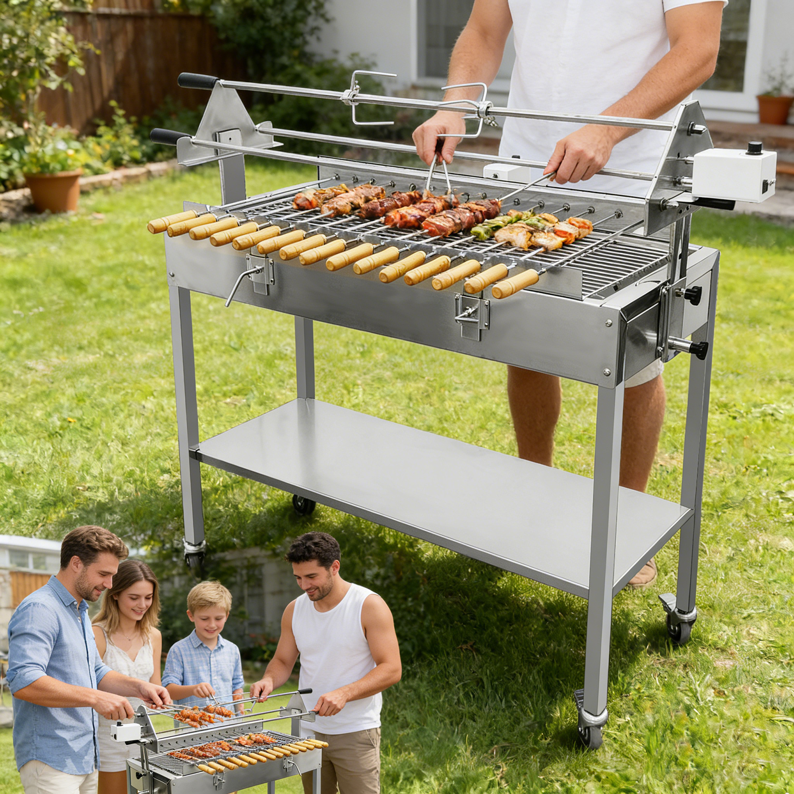 - Reinforced Charcoal Tray & Grates: Designed for optimal heat retention and even heat distribution, preventing hot spots and ensuring perfectly cooked food every time. The sturdy grates handle large cuts of meat, whole chickens, and hearty vegetable skewers without bending.