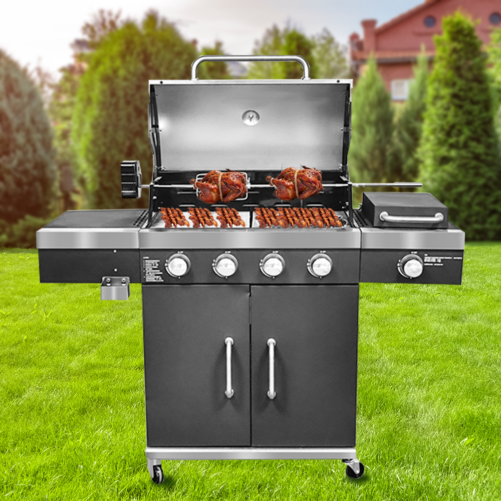 Its built-in motor spins skewers 360° automatically, ensuring every piece of meat, veggie, or seafood gets perfectly charred—no more flipping with tongs.