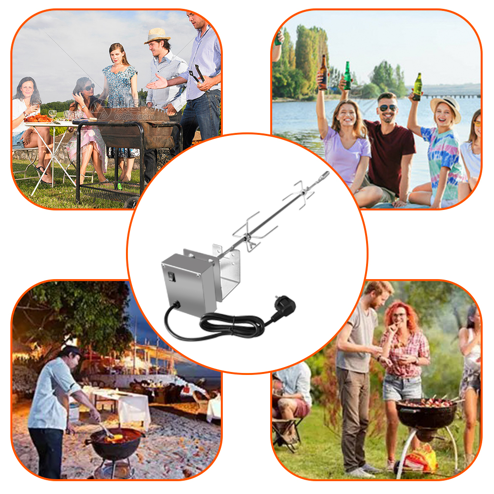 Its built-in motor spins skewers 360° automatically, ensuring every piece of meat, veggie, or seafood gets perfectly charred—no more flipping with tongs.
