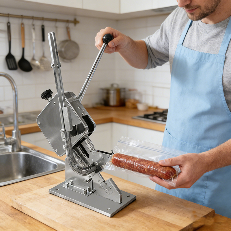 Designed with a U-shape clipping mechanism, it creates tight, secure seals on sausage links in one quick squeeze, preventing casings from bursting during cooking or storage. The manual operation requires no electricity, making it highly portable and suitable for both indoor and outdoor use (ideal for mobile food stalls or backyard sausage-making sessions).